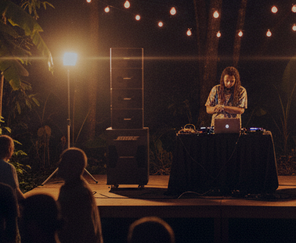 DJ, bandje, zanger? Lastige locatie met technische uitdagingen? We smullen ervan! Als standaard sets niet passen dan zoeken we gewoon met je mee.